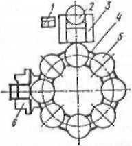 Рис. 6.2. Апаратурна схема приготування рідких дріжджів (а — за першим варіантом, 6 — за другим варіантом): 1 — водомірний бачок, 2 — автоборош-номір, 3 - ємкість для заквашування заварки, 4 — теплообмінник, 5 — ємкість для розмноження дріжджів, 6 — шестеренчастий насос, 7 — заварювальна машини, В — ємкісіь для розведення заквашених заварок