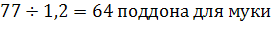 В процессе исследования данной темы курсового проекта определили, что с учетом семисуточного запаса муки на предприятии мощностью 45 тонн в сутки с ассортиментом : хлеб белый из муки I сорта – 15 тонн, развесом – 0,75 кг.; хлеб из ржаной обойной муки – 15 тонн, развесом – 0,8 кг.; хлеб «Орловский» - 15 тонн, развесом – 0,93 кг., необходимо: - 77тонн муки I сорта для хлеба белого; - 67,9 тонн ржаной обойной муки ; - 47,6 тонн муки II сорта; - 21 тонна ржаной обдирной.Каждый сорт муки хранится отдельно друг от друга на поддонах, количество которых зависит от количества семисуточного запаса муки на производстве. Итак, для I сорта – 64 поддона, для муки II сорта – 40 поддонов, для ржаной обдирной – 18 поддонов, для ржаной обойной – 57 поддонов. Всего 179 поддонов.