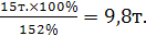 Определим расход муки идущий на выработку 15 тонн хлеба в сутки. Средний выход – 152%.