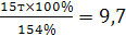Определим расход муки идущий на выработку 15 тонн хлеба в сутки. Средний выход- 154%.