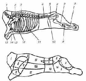 Мясом, с товароведческой точки зрения, принято называть мускулатуру с костями, связками, жиром и т.д. К мясу относят также мускулатуру головы, диафрагмы пищевода и т.д.