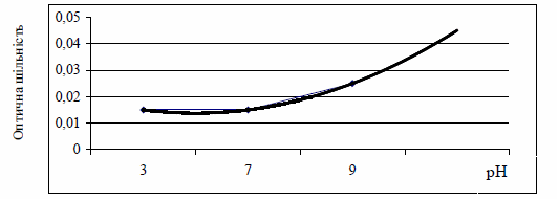 Рисунок 4 – Залежність кольоровості розчину, виготовленого з осаду екстракту, від рН води