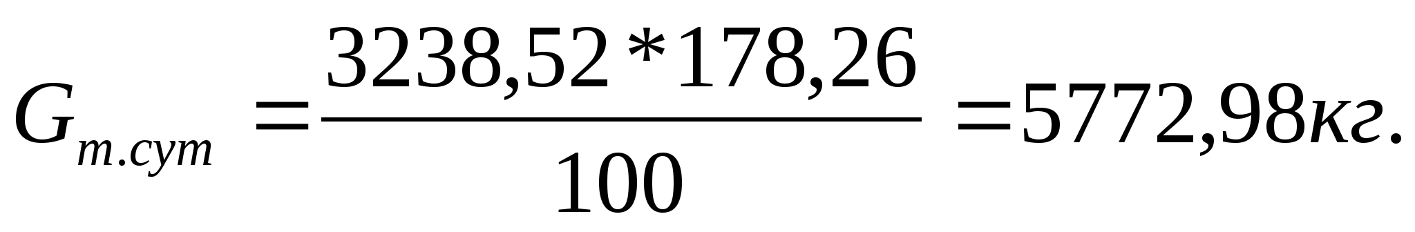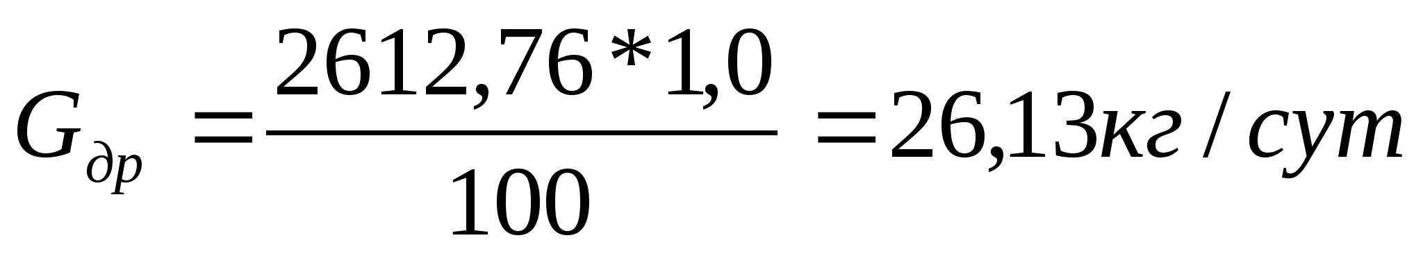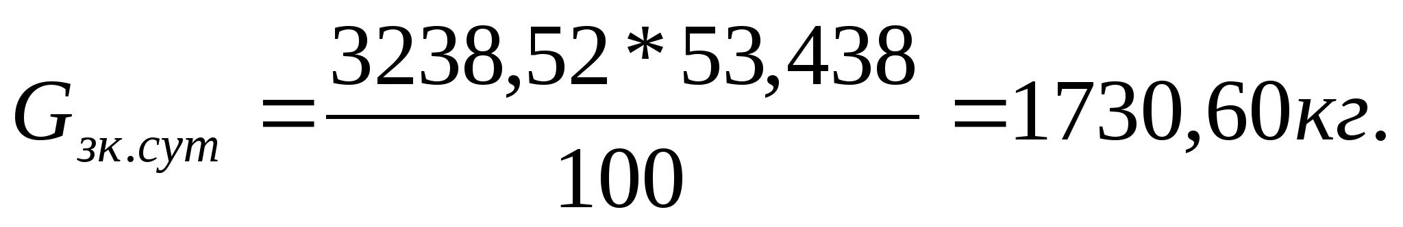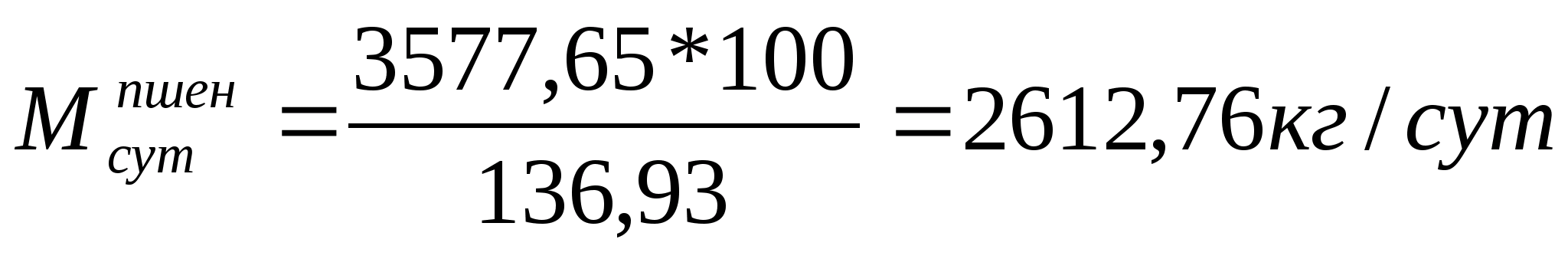 Pсут= 155,55*23=3577,65 кг/сут.