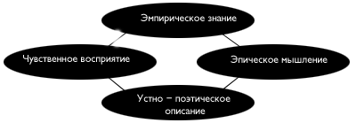 Чувственное восприятие и опыт формируют эмпирическое знание сказителя. Оно же приводит в "движение" процесс устно-поэтического описания. А все, вместе взятое приводит к эпическому мышлению.