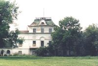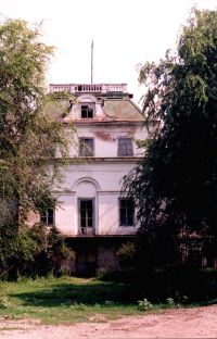 …Дом графа. Деревянные части половины помещения уничтожены пожаром 1990 г., кровля нарушена, полы выломаны, кирпичные стены внутри разбираются, от изразцовых печей не осталось и следа. В двух уцелевших комнатах содержится личный скот. Уничтожен балкон и каменное крыльцо.
