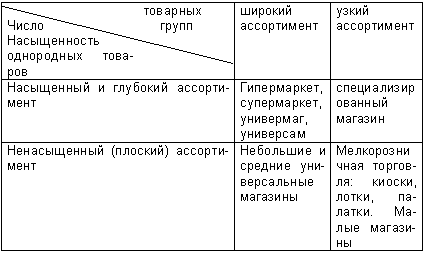 Исходя из рассмотренной выше классификации видов товарного ассортимента, а также особенностей самого товара и задачами, которые были поставлены владельцами магазина, можно выделить следующие виды розничных предприятий.
