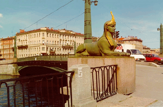 Египетский мост был построен в 20-х годах XIX века через реку Фонтанку. Существующий ныне мост мало напоминает прежний Египетский, который был однопролетным цепным. Эти цепи проходили через высокие чугунные ворота со множеством украшений и орнаментов, сделанных в египетском стиле. В 1826 году после окончания строительства по обеим сторонам на постаментах установили четырех сфинксов работы скульптора П.П.Соколова.