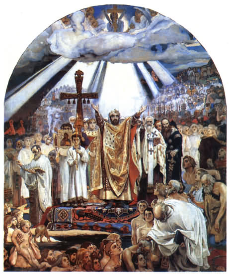 Готовясь к работам в храме, Васнецов знакомился с памятниками раннего христианства в Италии, изучал мозаики и фрески киевского Софийского собора, фрески Кирилловского и Михайловского монастырей в Киеве. За его плечами уже был опыт освоения традиций древнерусского искусства - памятников новгородского, московского, ростовского и ярославского зодчества, изучение московских старообрядческих икон, книжной миниатюры Древней Руси, народного творчества.