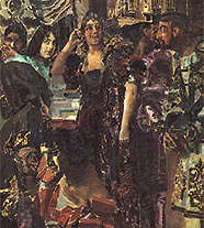 Можно было бы заметить, что соединение чувственной красоты с настроениями тоски и тревоги – не редкость в искусстве и свойственно не только модерну. Но дело не в том. Нужно очень серьёзно отнестись к предположению, что Врубель был активным творцом русского модерна. Если оно справедливо, образ художника четко локализируется во времени, занимает, так сказать, законное историческое место, зато отходит в область легенды романтическое представление о « единственном», об одиноком гениальном пришельце то ли из эпохи Возрождения, толи из средних веков, созданное и прижизненными биографами Врубеля, и поэтами – Блоком, Брюсовым, - и стоустой молвой. Тогда, значит, более прав Н. П. Ге: искусство Врубеля было только» одним из лучших выражений» настроений, охвативших людей в конце XIX века, мы начинаем представлять себе Врубеля не стоящим, подобно Демону, на горной вершине, а « в среде» -одним из участников абрамцевского кружка, одним из экспонентов « Мира искусства», одним из художников театра . . . словом, не « один», а «один из», хотя бы и из самых выдающихся.