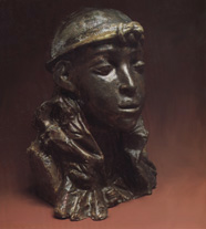 Второй аспект этого же образа – его смягченная, «примиряющая» ипостась; тот, кто у Лермонтова «похож на вечер ясный – ни день, ни ночь, ни мрак, ни свет.» он печален, задумчив, но не озлоблен. Таков «Демон сидящий»(1890), написанный сразу по приезде в Москве, - «молодая, уныло-задумчивая фигура». Может быть, ещё глубже по настроению, нежнее и мягче – большой рисунок, называемый «Голова ангела». Он сделан на оборотной стороне листа с эскизом «Воскресения» (поэтому зрители редко видят этот прекрасный рисунок), очевидно, ещё в Киеве.