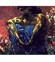 Трудно вообразить композиции Врубеля, перенесенные на стены импозантного, пестрого, несколько крикливого Владимирского собора. Прахов был прав, говоря, что для росписей Врубеля надо было бы и храм построить «в совершенно особом стиле».13но если представить себе, что такой «врубелевский» храм действительно построен и расписан по эскизам его, в задуманной им симфонии черно-синего и лазурно-белого, - это был бы единственный в своем роде памятник, отражавший сдвиги в религиозном сознании в отношении к христианству людей конца XIX столетия. Тут была бы запечатлена религия изверившегося или только наполовину верующего, сомневающегося человека, который задаётся мучительными вопросами и не находит ответа. И неизбежный спутник его – «дух отрицанья, дух сомненья». Это смятение духа косвенно выражено и в евангельских композициях Врубеля , предназначенных для росписи церкви. Немой вопрос – безответный вопрос живых перед ликом смерти – доминирующая нота во всех вариантах «Надгробного плача»(1887). Не только скорбь, а напряженное скорбное вопрошание, сосредоточение всех сил душевных на том, чтобы проникнуть в тайну ушедшего, в то время как ушедший непроницаемо безмолвен.