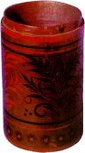Совсем в иной манере работает сестра Сенниковой - Зинаида Флегонтьевна Киева. Ее росписи мужественнее и лаконичнее. Она любит крупные формы цветов и листьев на больших упругих стеблях и яркие контрастные сочетания красок. Особая четкость рисунка и слаженность композиции выделяют вещи Зинаиды Флегонтьевны среди работ Семеновских мастеров. Одно из лучших ее произведений - большой декоративный ковш, принадлежащий Музею народного искусства. На его поверхности - строгий и торжественный золотой орнамент с крупными цветами и листьями. Отдельные детали его оживлены красной, зеленой и желтой контурной обводкой, придающей рисунку некоторую живописность.