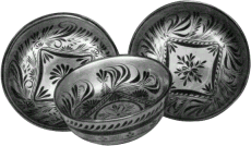Однако первые посудные промыслы Заволжья еще ничем не отличались от множества таких же производств, развивавшихся на территории нашей страны. Как и в других районах, местные мастера покрывали изделия льняным маслом или приготовленной из него олифой. Это придавало прочность деревянной посуде, она становилась и более красивой. Такой способ лакировки поверхности дерева не забыт и сейчас. Еще недавно его применяли при производстве самых дешевых чашек и солониц, служивших предметами повседневного хозяйственного обихода.