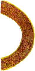 Этот недостаток мастера стремились сделать возможно менее заметным, нанося роспись красной и черной краской, создававшими с золотистым фоном звучный цветовой аккорд. Огненно-яркая киноварь придавала большую теплоту золотистому фону, а черная краска способствовала тому, что он казался светлее и ярче.