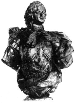 Наиболее известный мастер скульптуры первой половины XVIII в. — Бар-толомео Карло Растрелли (1675 — 1744). В 1716 г. он был приглашен Петром I из Франции и, переехав в Россию, остался в ней до самой смерти. Именно здесь Растрелли, не создавший ничего значительного до 1716 г., получил широкие возможности для творчества. Он создал ряд выдающихся произведений портретной монументальной и декоративной пластики. Большой известностью пользуется его бронзовый бюст — портрет Петра I (1724), в котором не только мастерски передано сходство, но и создан выразительный художественный образ, очень верно показаны властность и неукротимая энергия Петра I (рис. 4).