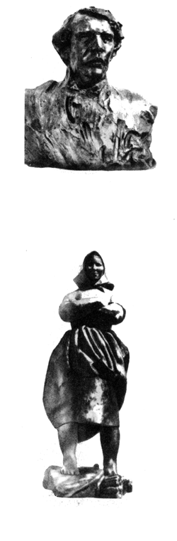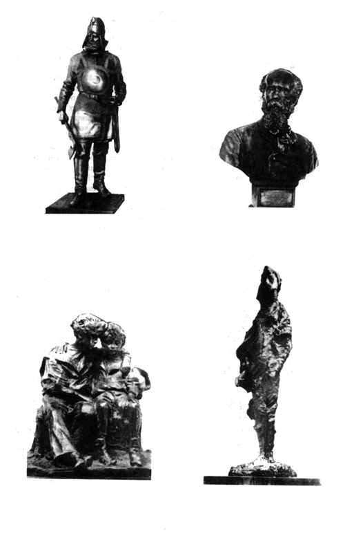 Работы Матвея Афанасьевича Чижова (1838 — 1916), отражающие в основном бытовые сцены, как правило, отмечались наградами. Так, фигура "Киевлянин с уздечкой" (рис. 16) получила малую золотую медаль. Золотые медали получили также фигуры "Крестьянин в беде", "Игра в жмурки" и др.