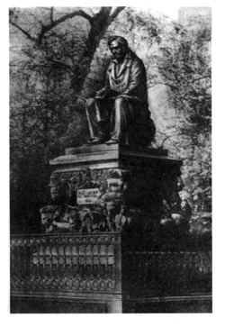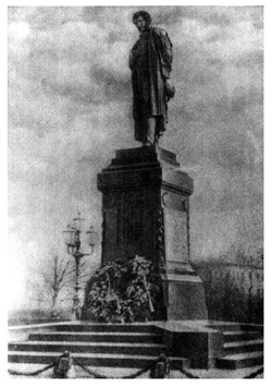 ля увековечения памяти величайшего из национальных поэтов было принято решение о сооружении памятника А. С. Пушкину. Среди многочисленных работ, представленных на конкурс, убедительную победу одержал проект Александра Михайловича Опекушина (1838 — 1923). Памятник, отлитый в 1880 г., прошел испытание временем и до сих пор любим народом (рис. 12). Опекушин изобразил Пушкина одетым в длинный сюртук, поверх которого наброшен широкий плащ. Обращаясь к традициям русской и мировой классики, скульптор сумел добиться большой пластической выразительности статуи. Поза поэта отличается непринужденностью, не исключающей, однако, благородной величавости и поэтической возвышенности.