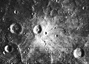 Действительно, морфология кратеров близка к лунной, их ударное происхождение не вызывает сомнений: у большинства виден очерченный вал следы выбросов раздробленного при ударе материала с образованием в ряде случаев характерных ярких лучей и поле вторичных кратеров. У многих кратеров различима центральная горка и террасная структура внутреннего склона. Интересно, что такими особенностями обладают не только практически все крупные кратеры диаметром свыше 40-70 км, но и значительно большее число кратеров меньших размеров, в пределах 5-70 км (конечно, речь здесь идет о хорошо сохранившихся кратерах). Эти особенности можно отвести как на счет большей кинетической энергии тел, выпадавших на поверхность, так и на счет самого материала поверхности.