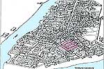 ОСТИЯ энергично застраивалась во II в. Строительство новой искусственной гавани (не показана) на Тирренском море привело к возрастанию роли Остии как главного порта Римской империи. Товары, которые импортировались из стран Средиземноморья, переправлялись из Остии в Рим (удаленном от нее на 25 км) по реке Тибр. Когда население Остии достигло примерно 50 тыс. человек, было построено много жилых зданий, включая дома-сады (выделено цветом). Рисунок выполнен по макету, созданному по сохранившимся остаткам города. |
