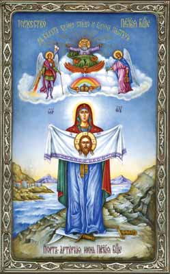 Первый явленный образ ХХ века - Порт-Артурская икона Божией Матери - чудесен по своему происхождению и необычен по композиции: никогда еще в иконографии Царицы Небесной не было изображения, на котором плат с Нерукотворным Ликом Спасите ля держит Она Сама.