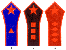 16 января 1919 года РВСР приказом № 116 ввел нарукавные знаки различия командного состава: под красной звездой красные суконные треугольники для младшего комсостава, квадраты для среднего и ромбы для старшего и петлицы с расцветкой по родам войск: