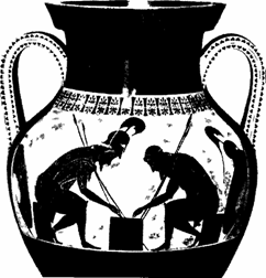 Эксекий. Ахилл и Аякс, играющие в кости.Чернофигурная амфора. Ватиканский музей