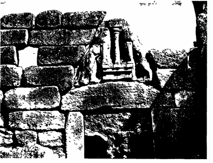 С XV—XIV вв. до н. э. центр эгейской цивилизации перемещается на юг Балканского полуострова, в Микены и Тиринф. Жители этих мест — греки-ахейцы строили свои города-крепости на высоких холмах, укрепляли их стенами. Отсюда появилось название «акрополь» — верхний город, где и возводились царские дворцы. Так, стены Микен длиной 900 м имеют толщину от 6 до 10 м, а Тиринфа — 17,5м. И сложены из каменных глыб весом 5—6т. Такую кладку не случайно назвали циклопической, она под стать гигантам-циклопам, а не простым смертным. Ворота в крепость Микены (XTV в. до н. э.) назывались Львиными, потому что над их пролетом расположена плита с изображением львов — стражей ворот. И это единственный памятник монументальной скульптуры в эгейском искусстве. Через ворота путь между параллельными стенами ведет на холм, в центре которого размещается Микенский дворец, комплекс более упорядоченный, чем Лабиринт Кносского дворца. Микенская крепость-дворец — прообраз греческого жилища. Центром его является мегарон — большой парадный прямоугольный зал с очагом посередине, служивший для торжественных сборищ и пиров. Вокруг очага 4 колонны поддерживают навес с отверстием в нем для дыма. Жилые и подсобные помещения группируются вокруг мегарона. Из эгейского дома с мегароном сложилась архитектура античного храма.