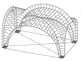 Найважливішою конструктивною задачею, що встала перед будівниками у зв'язку з зведенням споруджень, була нейтралізація їх розпору, тобто в зведеннях горизонтально направлених сил, прагнучих перекинути опори, що утворюються. Найпростіше рішення цієї задачі, – максимальне потовщення стін і опор тобто погашення розпору вагою інертної маси каменя. Частково цим пояснюються масивність романських будівель, невелика кількість і невеликі розміри їх отворів. Проте, прагнучи більш економічного рішення, романські архітектори стали розробляти конструкції, в яких нейтралізація розпору досягалася за рахунок взаємодії врівноважуючи один одного сил. (Важливим кроком в цьому напрямі було створення хрестових зведень, утворених перетином двох відрізків напівциркульних зведень рівного радіусу, що перехрещуються під прямим кутом (мал. 1). Таке зведення робить тиск лише на чотири опорні крапки, що дозволяє значно полегшити стіни. До того ж при використанні ряду примикаючих один до одного хрестових зведень для перекриття подовжніх приміщень їх розпір частково нейтралізується за рахунок зустрічного тиску. Романські архітектори широко використовували хрестові зведення напівциркульного перетину. Проте з їх допомогою стали перекривати спочатку лише невеликі прольоти – бічні нефи базилік, крипти, галереї монастирських дворів, – тоді як в широких центральних нефах довгий час зберігалася найпростіша напівциліндрична форма.