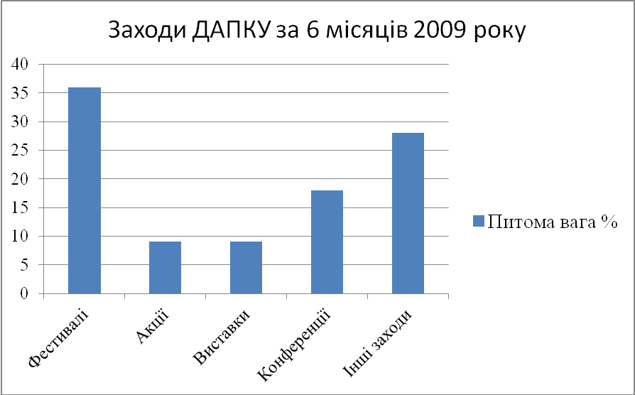 Перелік заходів ДАПКУ за 6 місяців 2009р.:
