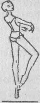 Три-и – удлиняя шаг, перейти на левую ногу по возможности дальше в направлении точки 7, при этом Ц. т. переносится на левую ногу, правая нога поднимается на II позицию на 90°, голова поворачивается налево.