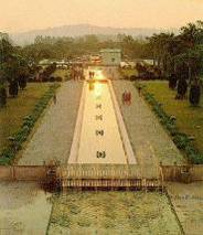 Выдающимся сооружением такого типа является мавзолей Тадж-Махал (1630 - 1 (552), названный "жемчужиной Индии". Это усыпальница жены Шах-Джахана (недалеко от города Агры). Мавзолей расположен не в центре, а в конце сада, на высокой террасе, на берегу реки. Перед фасадом здания расположен узкий канал, облицованный мрамором. Вдоль канала были цветники и ряды иссиня-черных кипарисов. Верхнюю террасу украшал цветочный партер. Зеленую оправу для "жемчужины" создавал садовник из Кашмира.