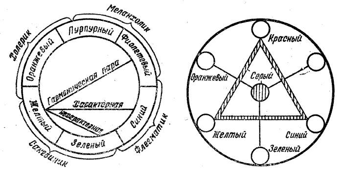 Рис. 1 - Цветовые треугольники Гете