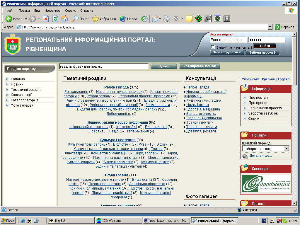 Для реєстрації запиту користувачу необхідно подати про себе такі відомості: ім'я, сайт, e-mail, ICQ (номер реєстрації в Міжнародній службі спілкування в реальному часі) i текст повідомлення – запиту.