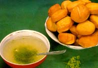 meat is usually accomplished with flat cakes with onion (ak nan). A
