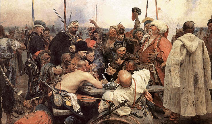 Запорожцы… Вот они перед нами во всей своей красе и удали. Галерея типов, совершенно оригинальных, неподражаемых, легендарных. Можно часами разглядывать их лица - загорелые, обветренные степными ветрами, опаленные солнцем, дубленные невзгодами, изрубленные в жестоких схватках, но все же красивые, источающие силу, энергию, бьющую через край.