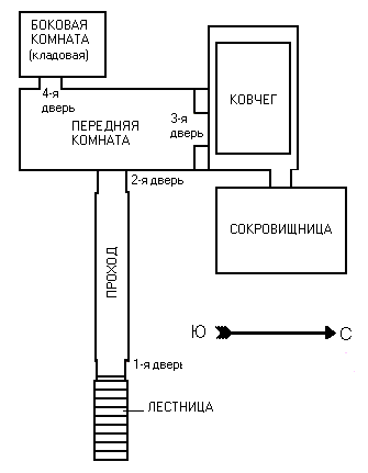Брешь постепенно увеличивалась. Когда она стада достаточно широкой, то выяснилось, что золотая стена - это не что иное, как бок огромного позолоченного ковчега. Только через два часа утомительной работы Г. Картер передал последний камень помогавшим ему Мейсу и Коллендеру. Наконец путь был свободен. Пол помещения, куда предстояло проникнуть археологам, располагался более чем на метр ниже уровня передней комнаты. Менее метра оставалось между ней и стенками ковчега. Осторожно спустившись, Г. Картер с фонарем в руках двинулся вдоль ковчега. Как только он дошел до угла, дорогу ему преградили две великолепные вазы, выточенные с необыкновенным мастерством из алебастра. Отметив место, где они стояли, Г. Картер передал вазы коллегам, Мейсу и Коллендеру, а сам отправился дальше.