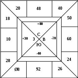 1. Привести колонку контрактов к нулю. Игроки недоиграли в сумме 54 очка до нуля. Делим это число на количество игроков (3). Списываем каждому по 54:3=18. Получилось – А: +8; В: –2; С: –6.