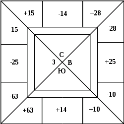 Следовательно, объявления по старшинству во время торговли можно представить в таблице, где каждое объявление, помещенное в нижней строке, старше любого объявления верхней строки; объявление любой игры из правого столбца старше объявления любой игры из левого столбца той же строки.