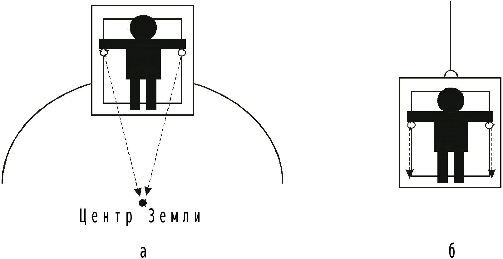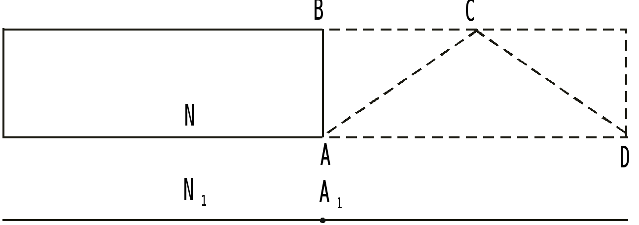 В точке а>1> на платформе находится наблюдатель N>1> (или прибор, фиксирующий эксперимент). На полу вагона в точке А размещен фонарик. Когда происходит совмещение точки А в вагоне с точкой а>1> на платформе, фонарик включается, появляется луч света. Так как скорость его конечная, хотя и большая, то для того чтобы достигнуть потолка вагона, где расположено зеркало, и отразиться обратно, необходимо время, за которое поезд уйдет вперед.