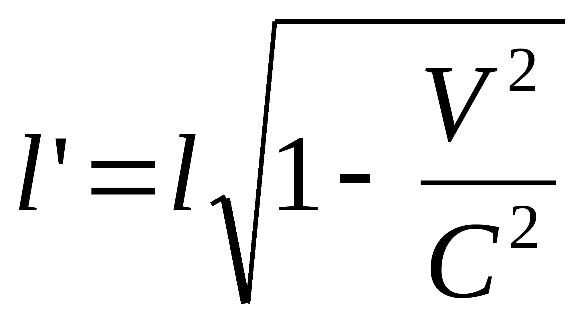 где /' — длина тела в движущейся системе со скоростью V по отношению к неподвижной системе; / — длина тела в покоящейся системе.