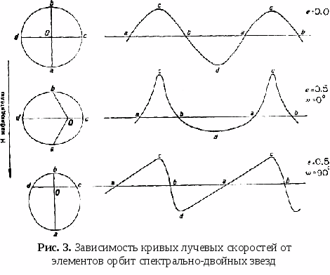 Применение спектрального анализа привело к открытию в 1889 г. звезд с переменными лучевыми скоростями (линии в спектрах этих звезд периодически смещаются по принципу Доплера – Физо). Изучение этого явления показало, что каждая из таких звезд представляет собой двойную систему, компоненты которой настолько близки друг к другу, что их не удается рассмотреть в отдельности даже при помощи наиболее мощных телескопов. Такие звезды получили название спектрально-двойных.