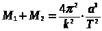 Третий закон Кеплера в форме, полученной Ньютоном для случая движения спутника относительно центрального тела, дает следующее выражение для суммы масс центрального тела и спутника: