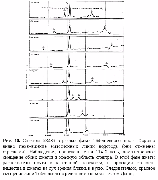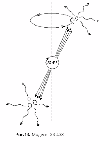 Данная дипломная работа посвящена уникальной по своим свойствам тесной двойной системе SS 433. Источник удивителен по богатству ярких феноменов, физика которых во многом до настоящего времени окончательно не выяснена. SS 433 является оптическим, радио- и рентгеновским источником, с уникальными спектральными свойствами. В оптическом спектре этой звезды наблюдаются три серии эмиссионных линий, соответствующих одним и тем же атомным переходам. Каждая линия серии Бальмера представлена в спектре тремя: «стационарной» и двумя, смещенными в красную и синюю сторону на несколько ангстрем. Смещенные компоненты линий движутся по спектру с периодом 164 дня с амплитудой порядка тысячи ангстрем. «Стационарные» линии также периодически смещаются с гораздо меньшей амплитудой и периодом 13 дней. Блеск звезды меняется с тем же периодом.Нерешен вопрос о природе компактного объекта, что он представляет собой: нейтронную звезду или черную дыру. Существует слишком много теоретических и наблюдательных данных о SS 433, чтобы можно было бы всех их описать. Неизбежно и появление новых путей при решении проблемы.