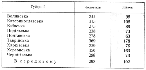 В українських губерніях на 1000 душ всього населення припадало грамотних: