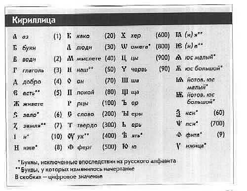 Цифровая система глаголицы последовательна: первая буква = 1, вторая буква = 2 и т. д., что свидетельствует о том, что она была исходной системой счета. Что же касается кириллицы, то в ней все смешалось и порядок следования букв не соответствует натуральному ряду чисел, есть буквы, которые употребляются только как цифры. Такое положение дел в кириллице возникло потому, что она синтезирует греческую азбуку и глаголицу, т. е. включает буквы из разных азбук. Греческие буквы пси и кси практически всегда употреблялись как цифры, очень редко их можно было встретить в собственных именах АлеХандръ, ХсерХъ (Ксеркс), иногда в словах типа псалом (с первой буквой пси).