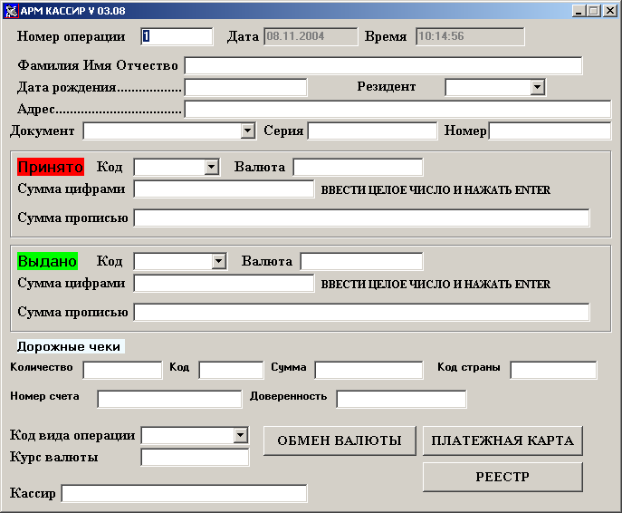 Одна из задач КБ, связанных с обменными пунктами – это концентрация усилий на решение услуг различного рода и повышение эффективности этих услуг, уменьшение количества бумажных документов, заполняемых в ручную, увеличение клиентуры. Для эффективного решения этих задач необходима автоматизация основных операций, производимых в обменных пунктах валют, т.е. создание АРМ валютного кассира.[3]