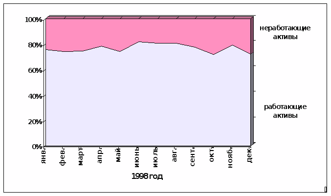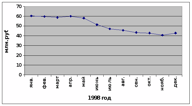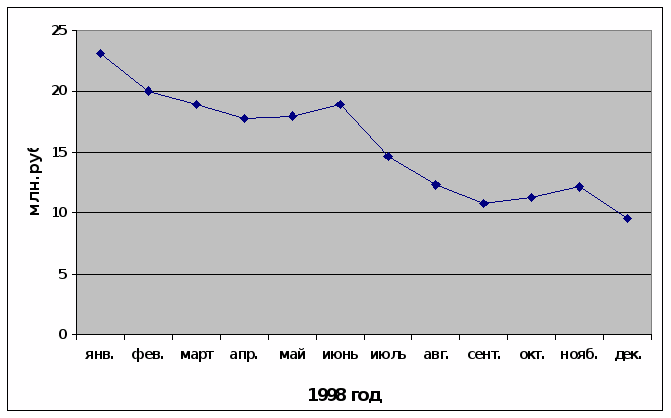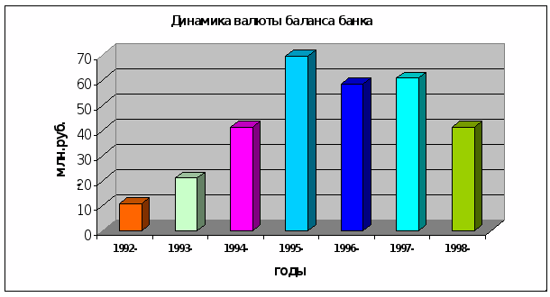 Валюта баланса в первом полугодии 1998 года характеризовалась достаточно незначительным динамичным снижением в первые шесть месяцев и резким падением (17,7%) с августа месяца этого года.