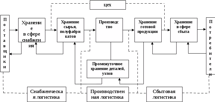 Материальный поток исходит либо из источника сырья, либо из производства, либо из распределительного центра. Поступает либо на производство, либо в распределительный центр, либо конечному потребителю на схеме каждая стрелка символизирует некий материальный или информационный поток. Потоки в сущности являются связями между элементами системы.