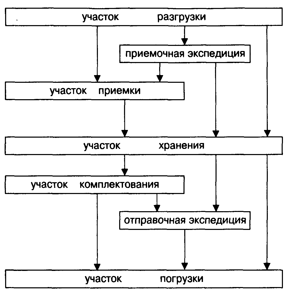 Материальные потоки могут протекать между различными предприятиями или внутри одного предприятия. Прежде чем формулировать определение материального потока, разберем конкретный пример материального потока, протекающего внутри склада торговой оптовой базы*.