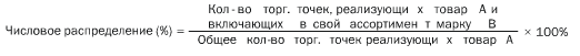 Числовое распределение показывает интенсивность распределения. Чем ближе числовое распределение к 1, тем интенсивнее сбыт. Числовое распределение, равное 1, дает полное покрытие рынка или характеризует полный охват рынка.